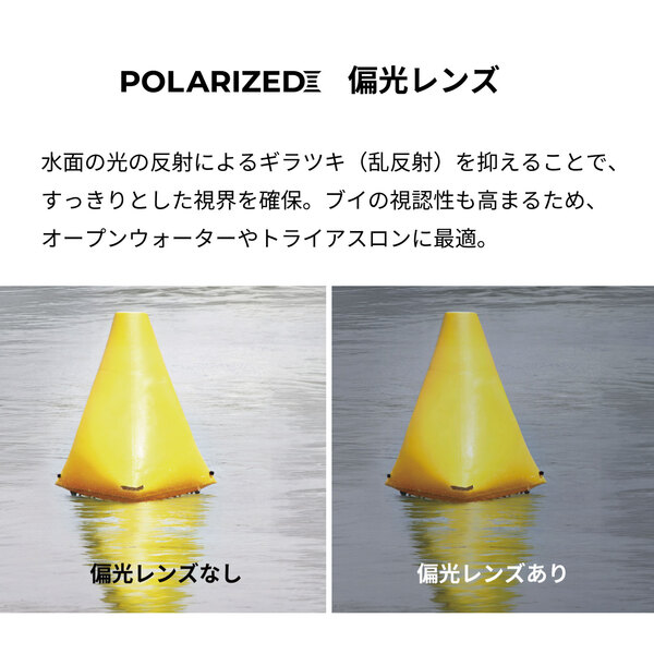 Polarized lenses cut glare (diffuse reflection) from the surface of water to ensure comfortable visibility even in strong sunlight.