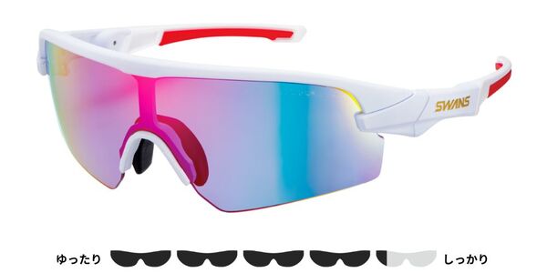 あえて剛性を適度に落とすことでしなやかに頭部を包み込む特徴的な8の字構造のテンプルはそのままに、顔との密着感を高めて隙間からの光の侵入を抑えるレンズカーブ及びカット形状を新たに採用。