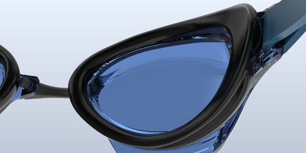 イルカの皮膚構造を応用した波状のフィンにより、ゴーグルの抵抗を大きく低減することに成功。