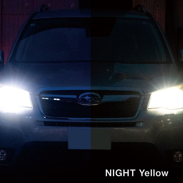 白色LED光が眩しいと感じる青の波長の光を吸収し、車のヘッドライトなど指向性の強い眩しさを軽減します。