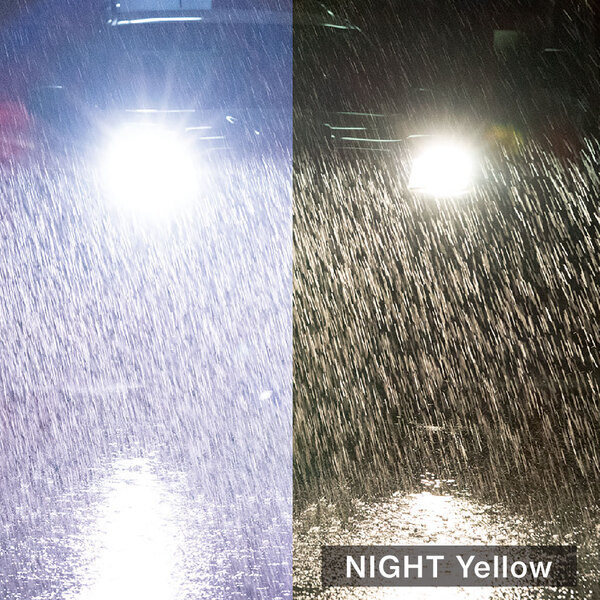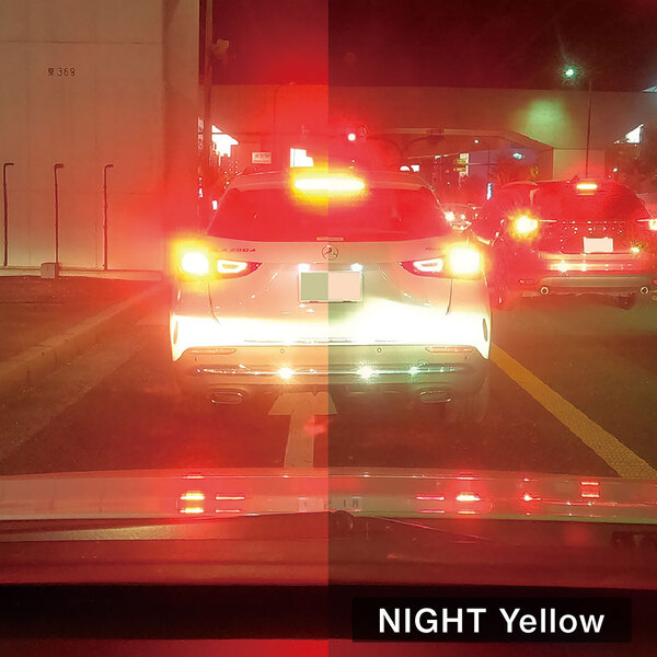 一般道の運転中、特に夕方や夜間は対向車のライトや周辺の光で強いまぶしさを感じやすく、歩行者や自転車も見えづらくなります。ナイトイエローを着用すると光の拡散が抑えられ、チラつきやまぶしさが大幅に軽減されました。白線や黄色車線、歩行者、自転車も視認しやすくなり、安全性が向上する効果を実感しましたので、今後も使い続けたいと思っています。