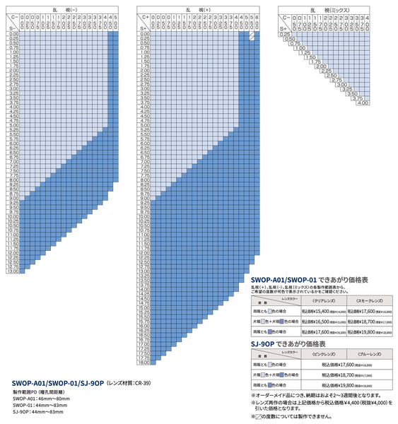 ※強度数の場合は、レンズが製作できない場合もございます。あらかじめご了承ください。