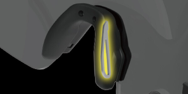運動によるアイウェアのズレを防ぐ「ノンスリップラバー」を後頭部に当たるテンプル内側に採用しました。