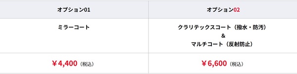 コーティングオプションを必要に応じてお選びください。
