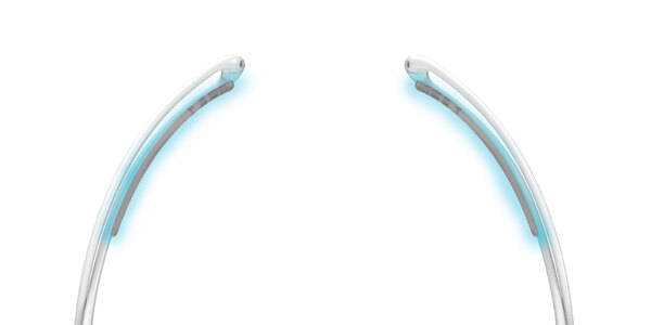特徴的な8字形状で上下に分かれた構造のツイストテンプルは、つるの中央部分で交差することで、軽量でありながら強度を保ちます。また、上下のテンプルそれぞれがフレキシブルに動くことで、様々な頭部形状にフィットします。また、新たにレンズのカーブ及び形状を見直すことで、顔との隙間をさらに軽減し、光の侵入を抑えることで集中力をさらに高める。
