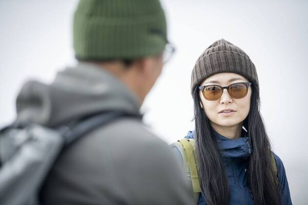 この可視光線透過率30~50%程度のレンズは『外から着用者の眼がうっすら見える』ことが多いです。相手から眼が見えることでコミュニケーションが取りやすくなる効果もあります。山の楽しみの一つは会話や挨拶。ちょっとしたコミュニケーションで得られた情報が安全に役立つことがあるかもしれません。