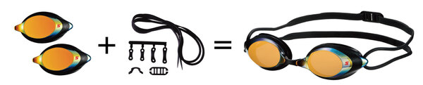 既製の度数が入ったレンズを組み立ててできるスイミングゴーグル
