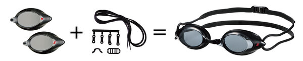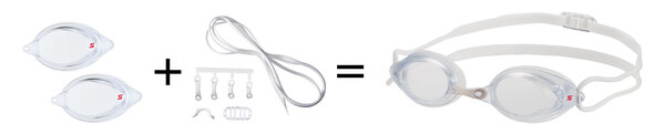 既製の度数が入ったレンズを組み立ててできるスイミングゴーグル
