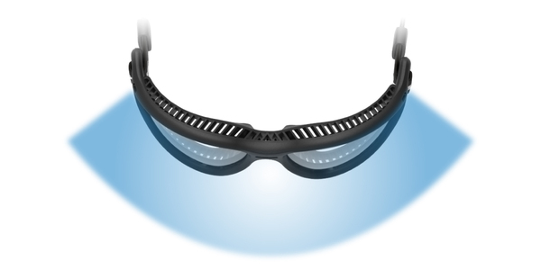 3Dプリンタでしか実現できない構造設計に加え、高弾性フレームと高分子ポリカーボネートレンズの組み合わせにより、強い衝撃を分散吸収し、高いレベルで着用者の眼を護ります。 -