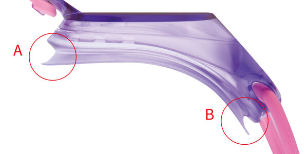 B:クッション先端部分をカールさせ、顔に突き刺さる不快感をなくし、クッションが自然に顔になじみます。