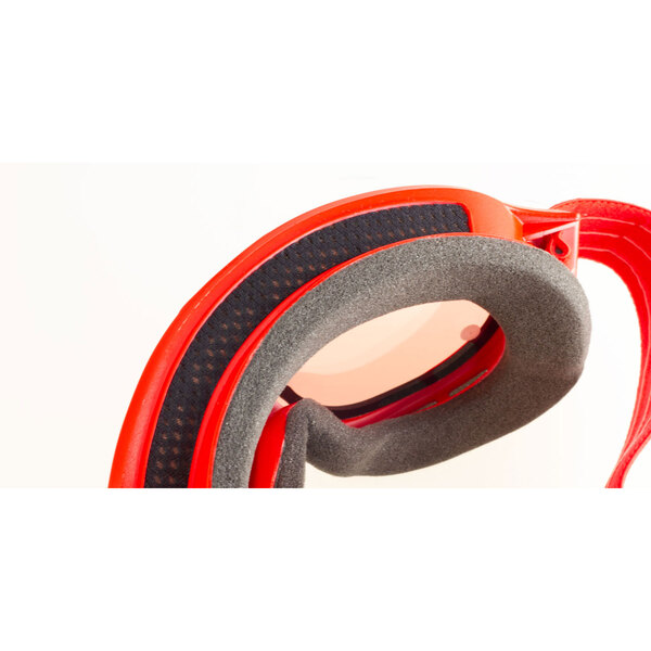 標高が高いスノーエリアでは気圧差によってダブルレンズの間が膨張して視界に歪みが生じることがあるため、そうならないためにダブルレンズの内側に気圧を調整する小さな穴を空けています。しかし、穴が開いていると水分がレンズ内に入ってしまいくもりの原因になってしまいますので、それを防ぐためにこのAPA(気圧調整装置)フィルターシールを気圧調整用の穴の上に貼り付けています。