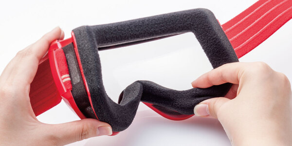 当社従来品に比べ2倍の吸水力を持つくもり止め技術。レンズ内側に施されたコーティングが、ゴーグル内部にたまる湿気をスポンジのように吸収することでくもりを抑制する。くもり止め効果は吸収した湿気が乾くたびに再生するため、繰り返し使用しても高いくもり止め効果を発揮する。