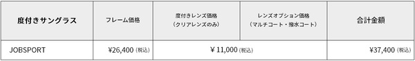 ※ JOBSPORT-βは度付きレンズとセット販売のみのお取扱いです。