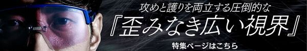 アドレスからフィニッシュに至るスイング動作の中でフレームが視界に入らない、“視界のほぼ全てがレンズ”という状態を実現。顔とサングラスとの隙間から光や紫外線が入るストレスを抑え、プレーの集中力を保つ。